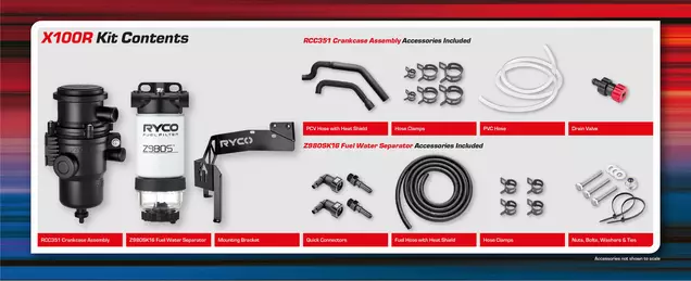 Fitment kit for the installation of additional filters - a fuel water separator and/or crankcase assembly in the engine bay.